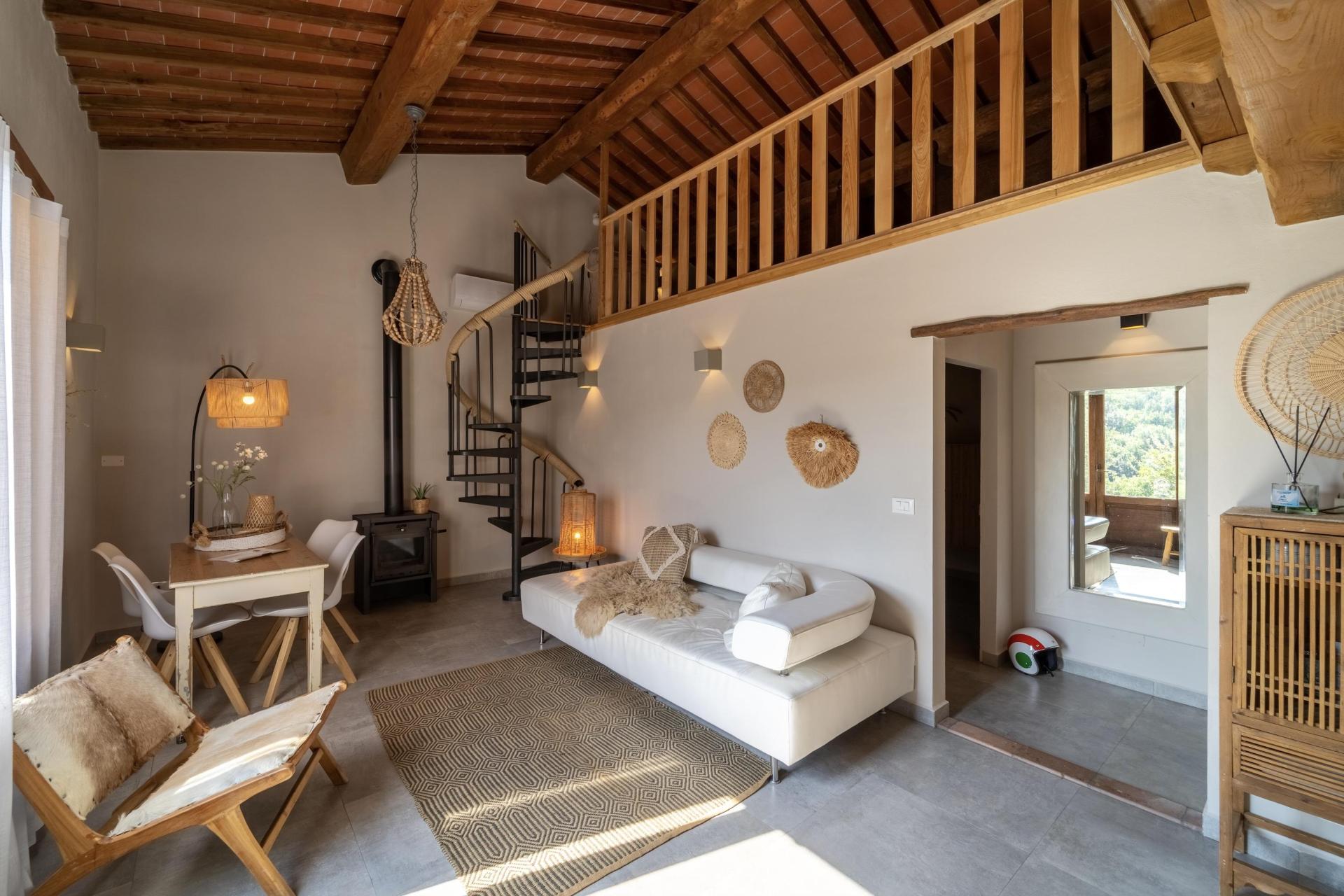 De agriturismo biedt vier charmante appartementen voor twee tot zes personen. Elk appartement is met zorg ingericht, met hoogwaardige bedden, moderne badkamers en een warme combinatie van Toscaanse sfeer en hedendaags comfort. Ze hebben allemaal een eigen buitenruimte, variërend van terrassen met panoramisch uitzicht tot intieme zitplekken tussen het groen.